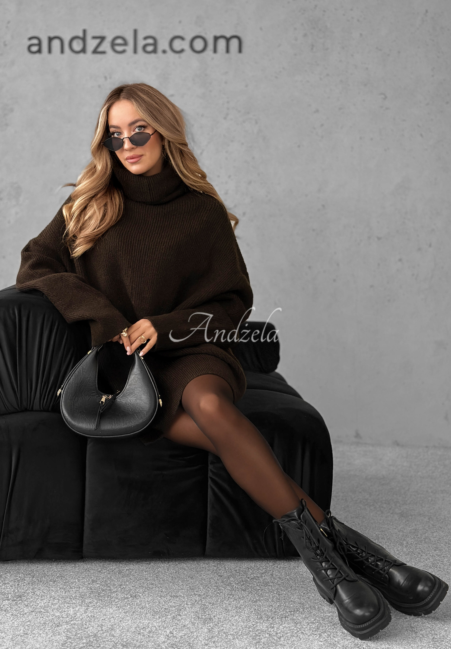Oversize svetr s dlouhým střihem je ideálním základem pro každodenní stylizace. Střih má rolák, rukávy a spodní část jsou zakončeny stahovací gumou. Tento model bude vypadat skvěle s botami a sportovní obuví. Produkt je k dispozici v několika barevných variantách.