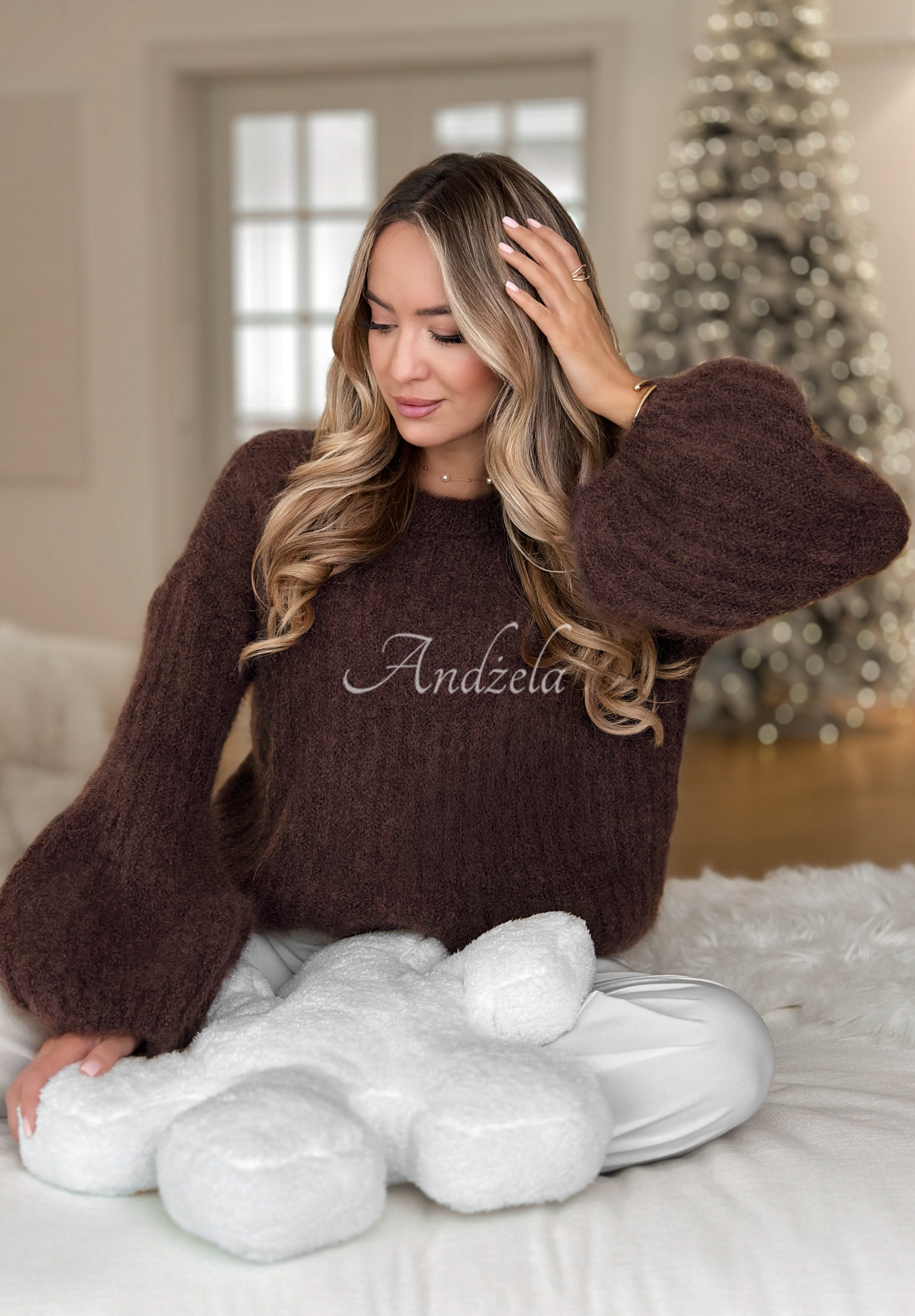 Měkký moherový svetřík se širokými rukávy Cotton Candy čokoládový