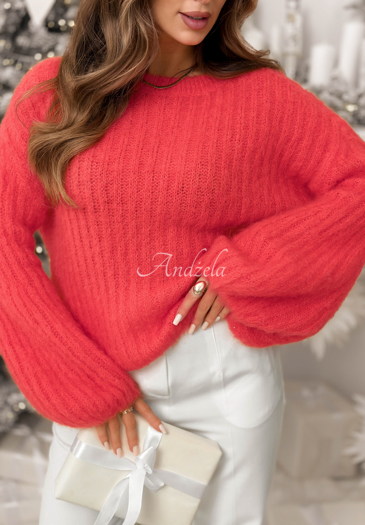 Měkoučký svetřík vyrobený z vysoce kvalitního mohérového materiálu s příměsí vlny. Jde o model se zkráceným střihem a zakulaceným výstřihem. Výjimečnost mu dodávají rukávy, které jsou v horní části přiléhavé a směrem dolů se rozšiřují.