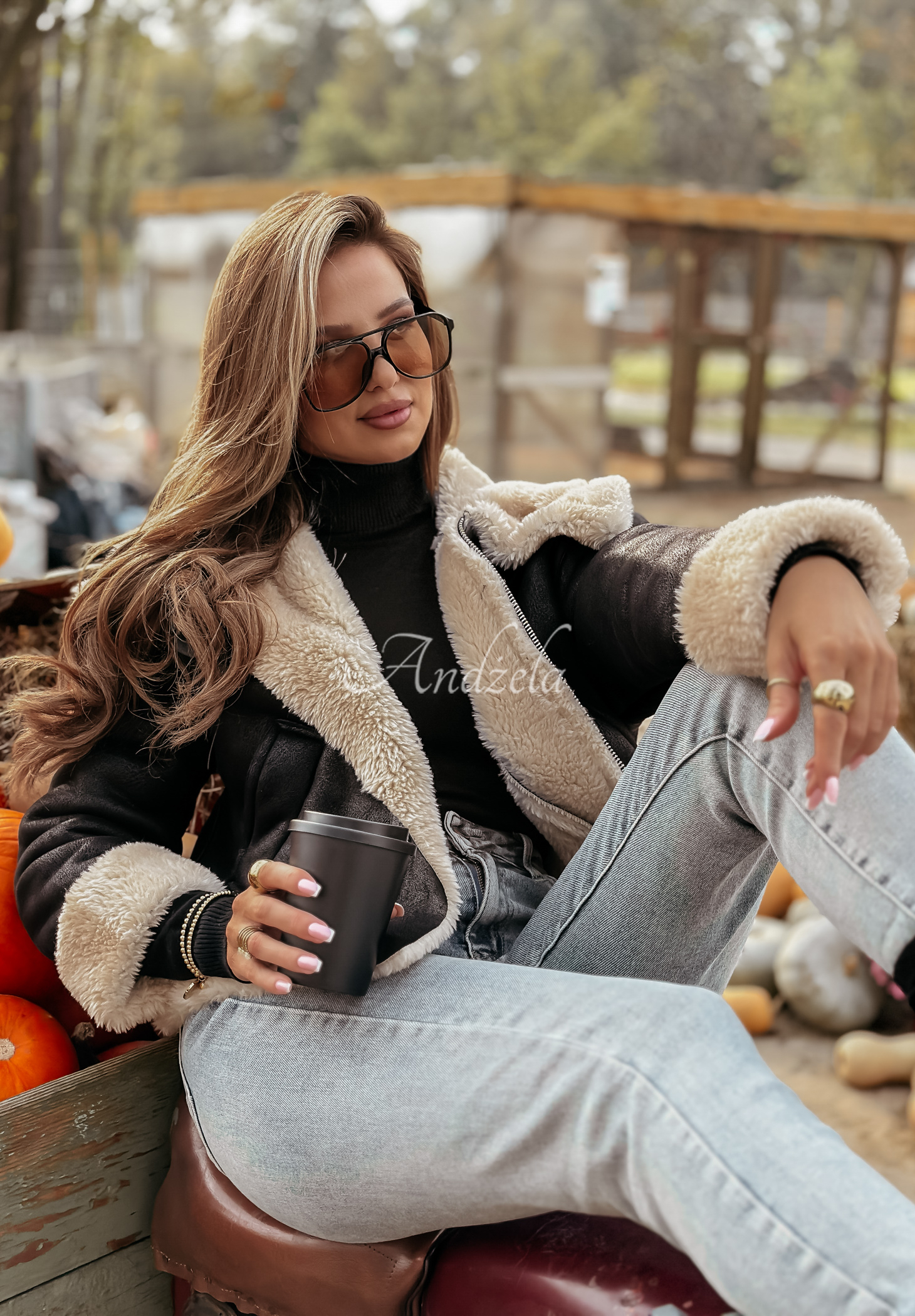 Semišová bunda bude vypadat opravdu skvěle jako doplněk ke stylingu do chladnějšího počasí. Byla zateplena měkkou ovčí kůží, která je zvýrazněna také na ohrnutých rukávech a límci. Jedná se o model krátkého střihu se zapínáním na zip a funkčními kapsami. Na bocích jsou umístěny nastavitelné pásky a celek je doplněn stříbrnými detaily.