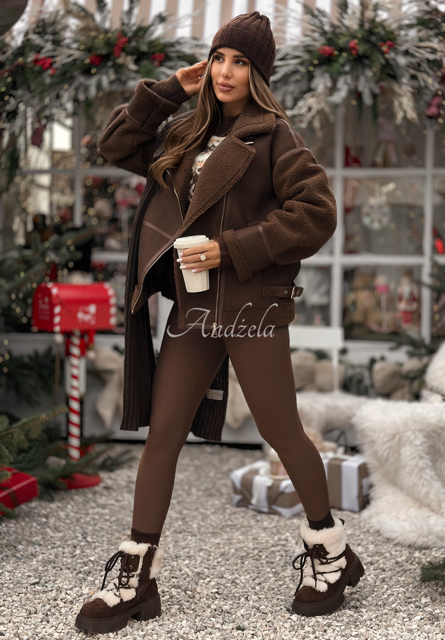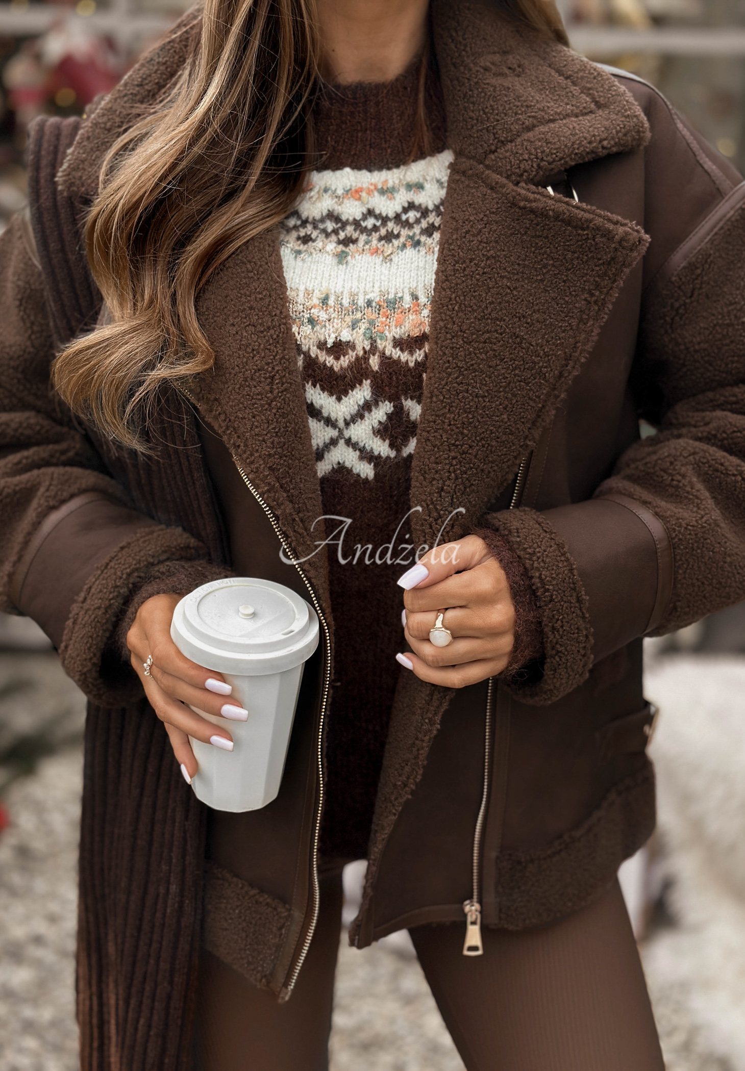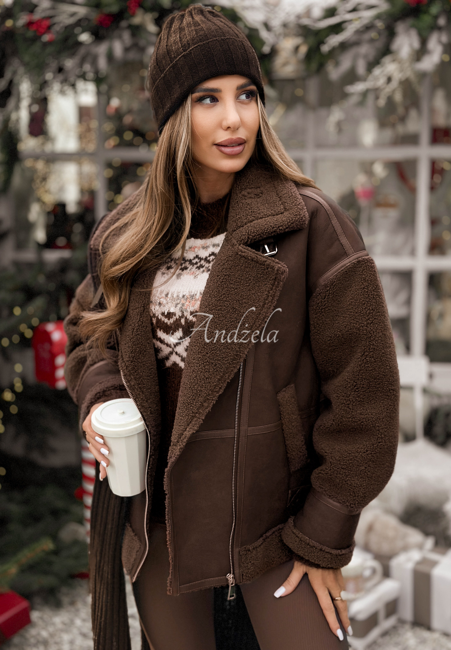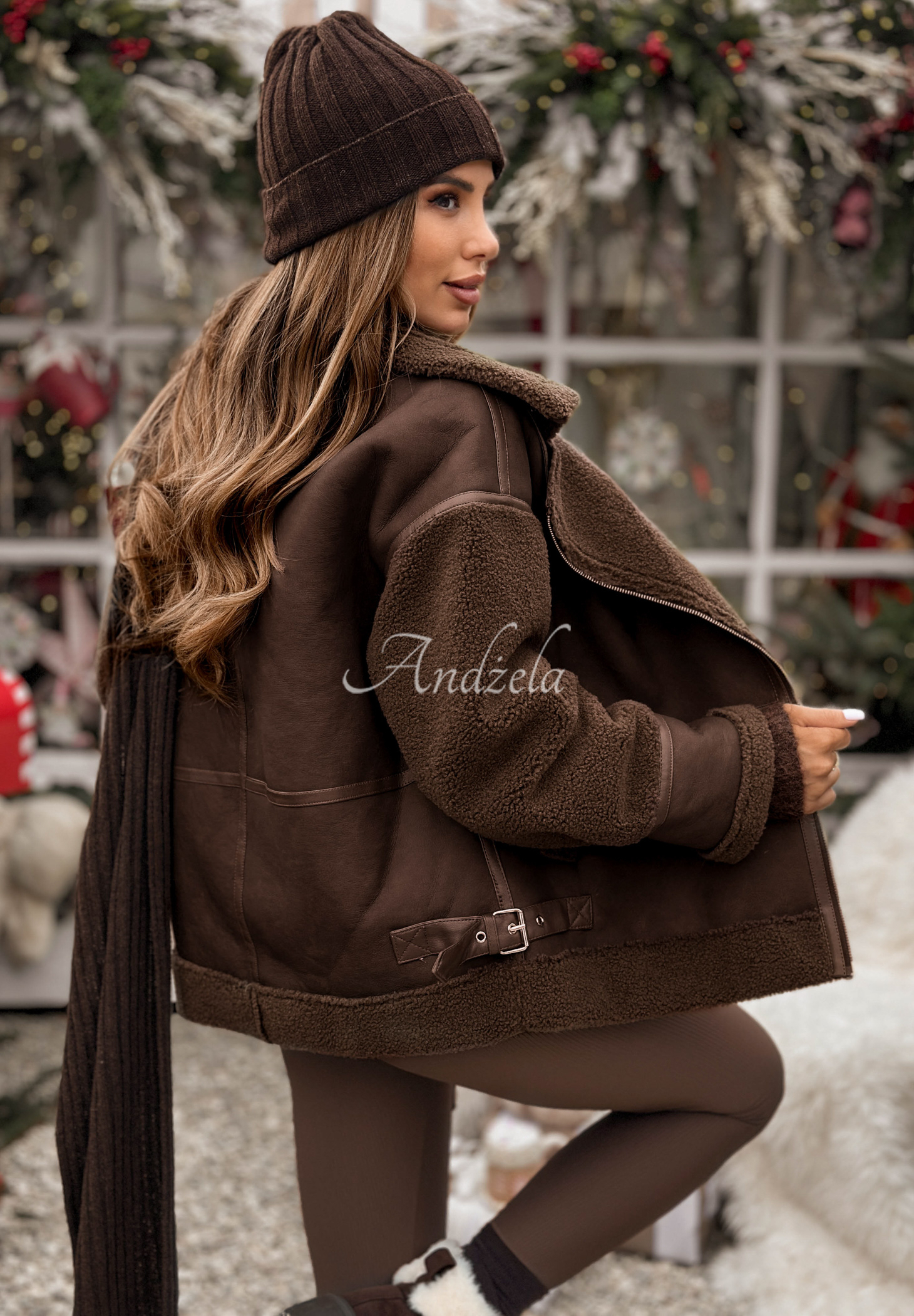 Kožená bunda zateplená příjemným beránkem, jehož vsadky zdobí i svrchní část. Model s límcem, zapínaný na zip. Vpředu se nachází dvojice funkčních kapes a ve spodní části ozdobné pásky po stranách.