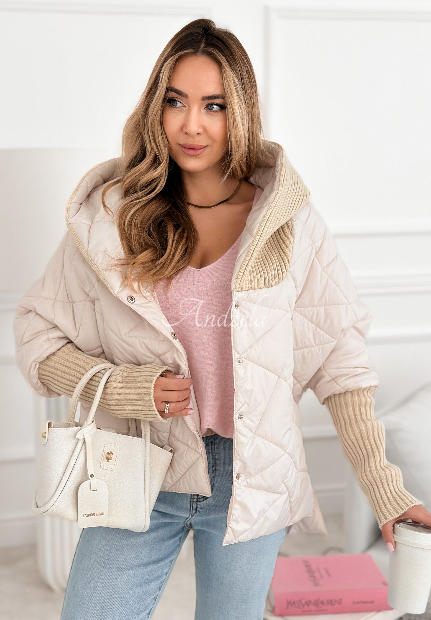 Jemně zateplená bunda originálního a oversize střihu je perfektní volbou pro sezónu jaro/podzim. Model s velkou kapucí se vyznačuje lemem z elastického, žebrovaného materiálu, stejně jako rukávy. Bunda má na vnitřní straně lem, nastavitelný na zádech. Výrobek je vyroben z prošívaného materiálu a má hluboké kapsy v pase. Produkt je dostupný v několika barvách. Projekt ANDŻELA!
