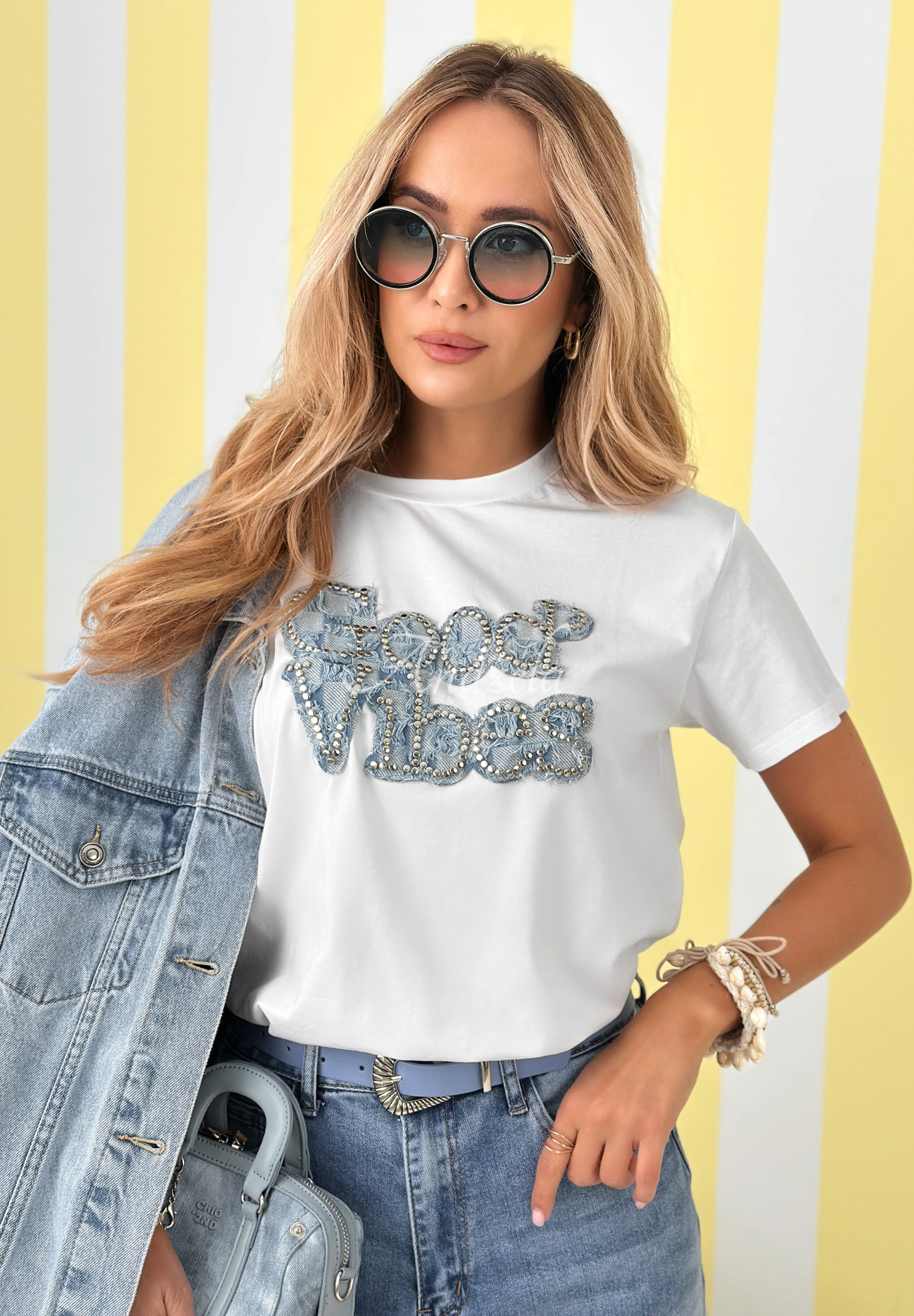 Bavlněné tričko v módním provedení vyniká nášivkou na přední straně zdobenou kamínky. Jedná se o model klasického střihu se zaobleným výstřihem a krátkými rukávy.* elastický materiál* zaoblený výstřih* krátké rukávy* nášivka zdobená kamínky